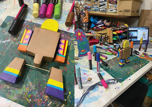 A cardboard toy robot/person. I want to play off the idea of what toys are now in 2020. Mass produced, plastic, high turnover, gimmicks, marketing opportunities for big business. This toy is made by a local maker in the owners community. Made sustainably and with personalised features requested by the child. Rainbow colours, spikey hair and freckles, rain in colour. It can be the "every person" in the child's toy collection. I like the idea it could even inspire the child to make their own toys. Beginning their connection to materials/play and the creative process. Make the toys you want to see and use.